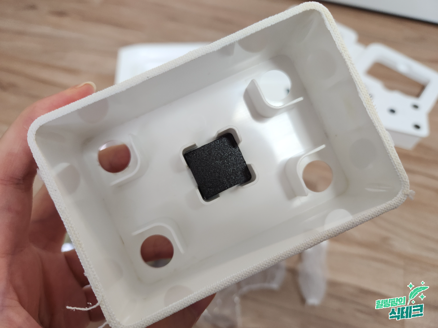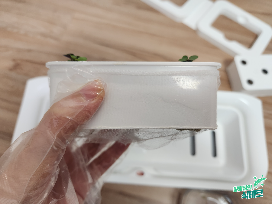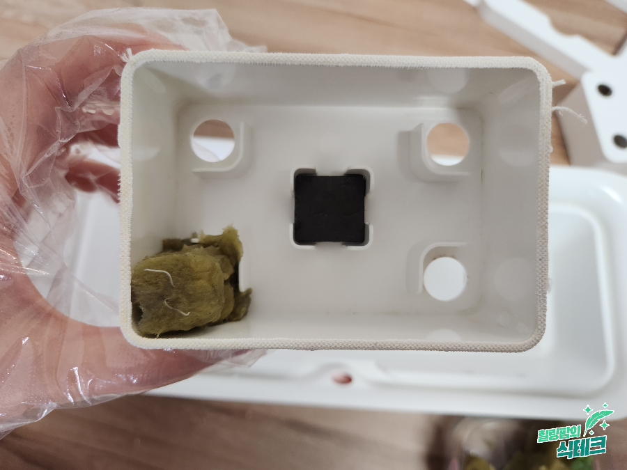 틔운 미니 키트는 총 10구로 구성되어 있는데 작물을 더 크게 키우기 위해 가운데 구멍을 막아줬다.